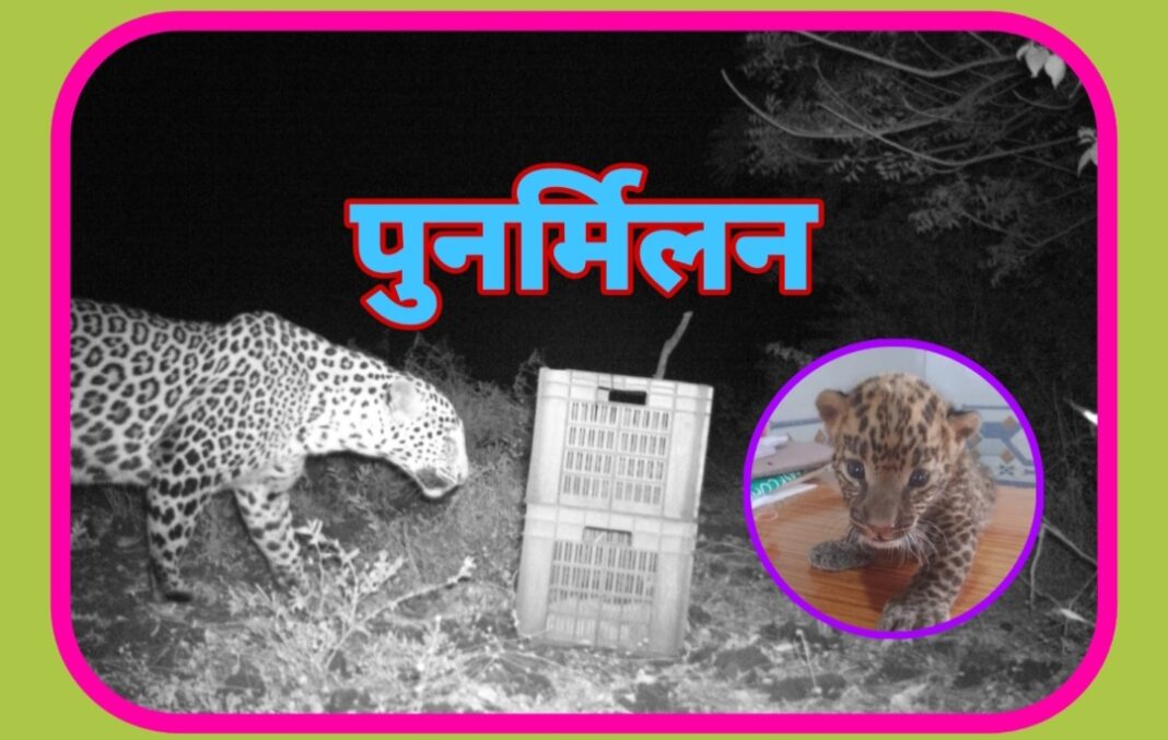 अखेर वनविभागाने मध्यरात्री घडवले शावक व आईचे पुनर्मिलन,मकाच्या शेतात आढळला होतं बिबट्याचा शावक